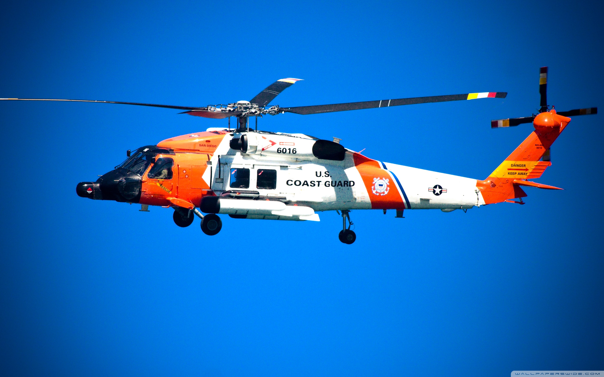 Description: A helicopter flying in the sky with a propeller on it's side and a landing gear down on the front of the helicopter.