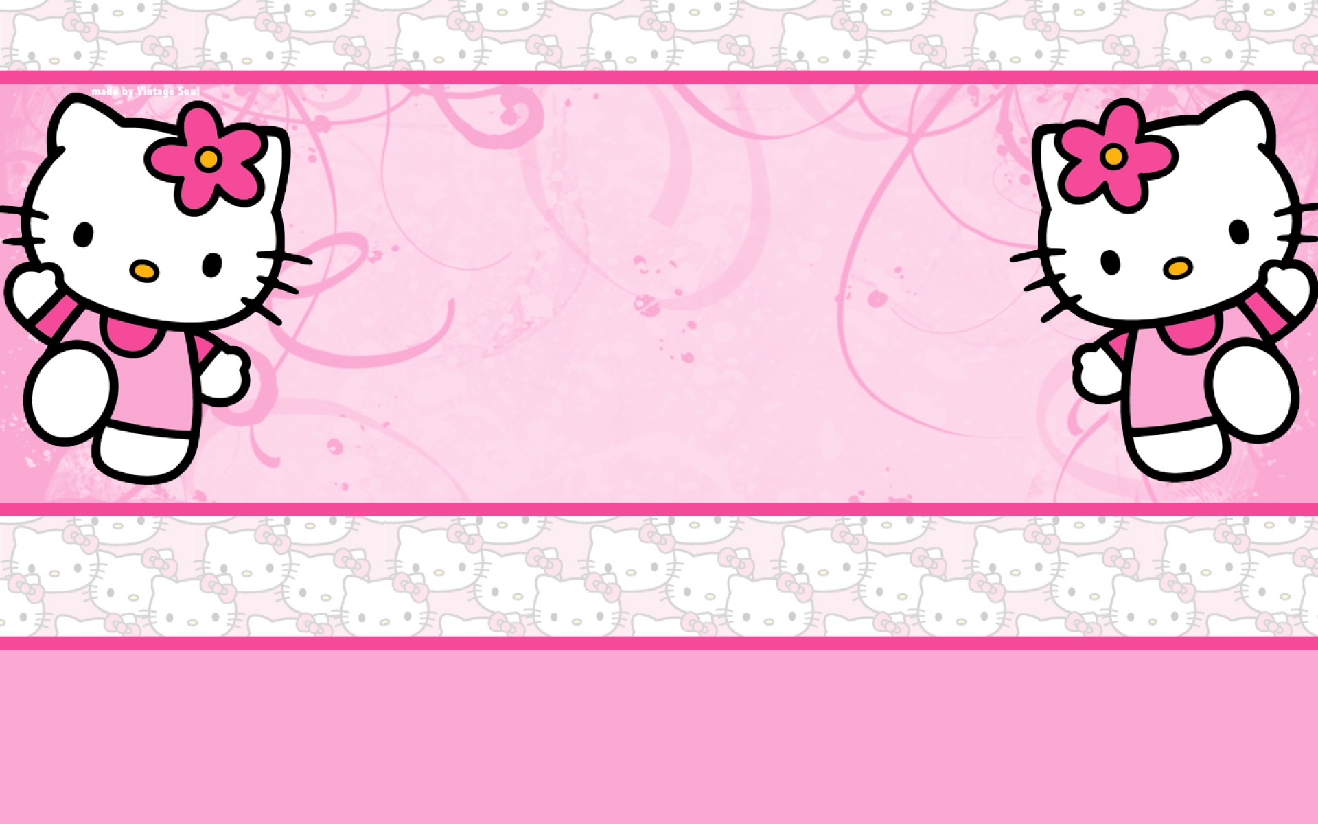 Description: A hello kitty wallpaper with a pink background and a hello kitty picture on it's side.