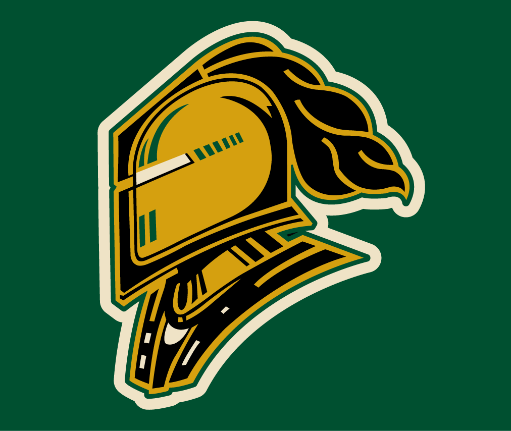 Description: A helmet with a cigarette sticking out of it's mouth on a green background with a white stripe.