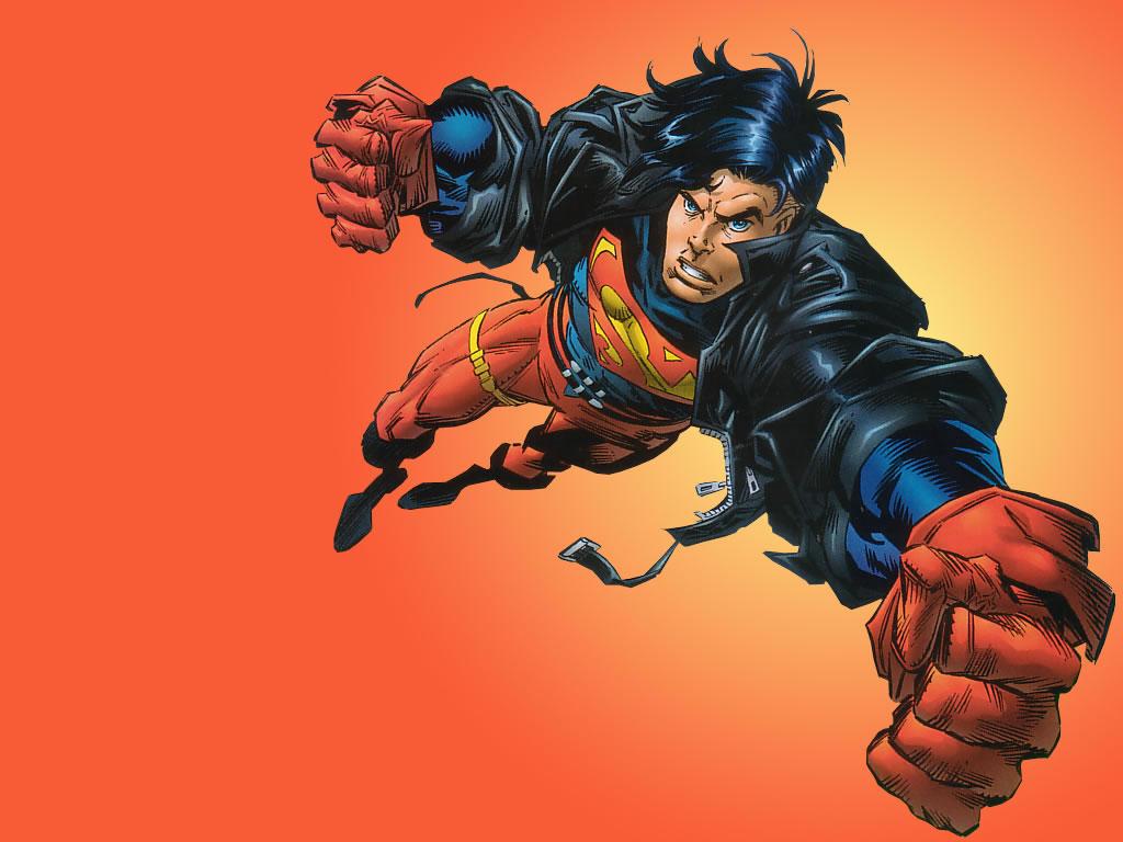 Description: A man in a black suit and red gloves is flying through the air with his hands out and his feet out.