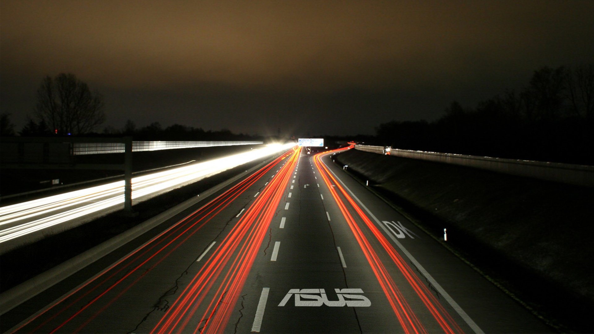Description: A highway with a lot of traffic going down it at night time with long exposure of the lights on the road.