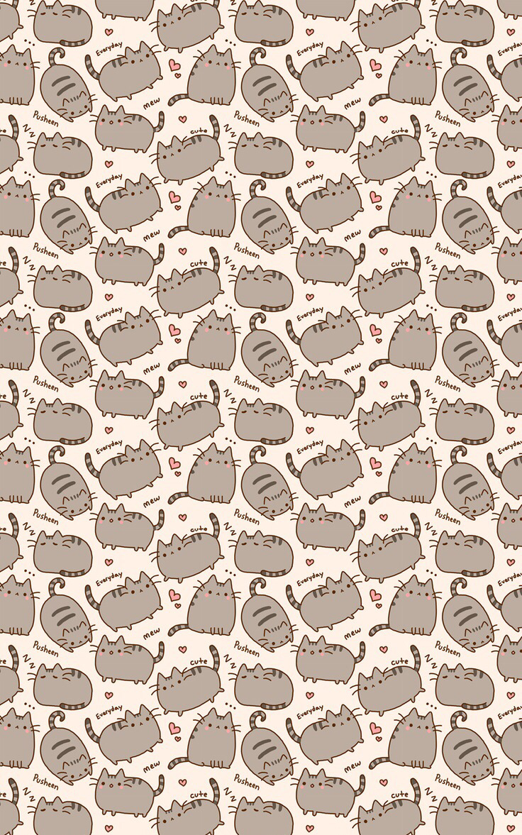 Description: A pattern of a group of hippos with different faces and eyes on a white background with a brown outline.