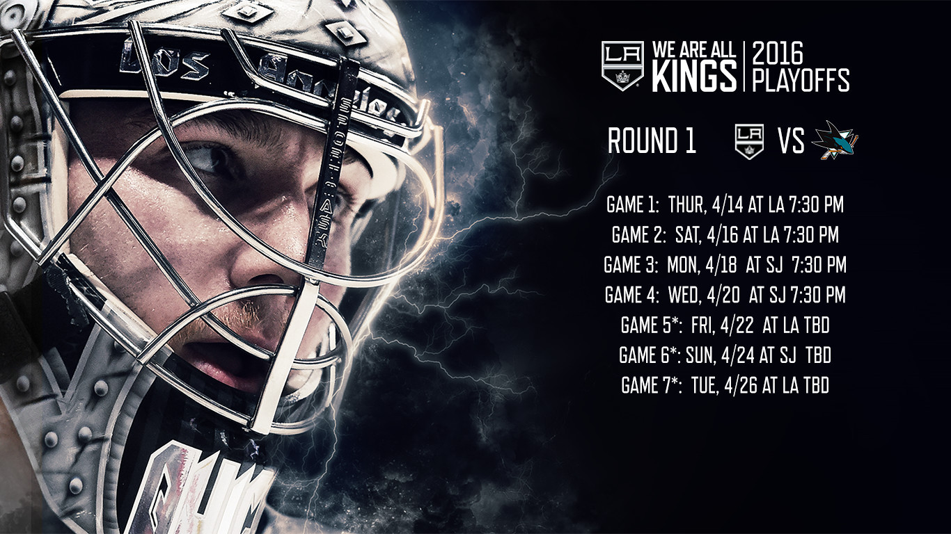 Description: A hockey player with a helmet on and lightning in the background with a text description for the game between the two teams.