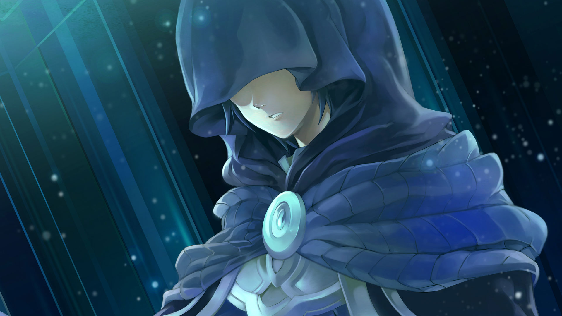 Description: A person in a hooded jacket holding a cell phone in a dark room with snow falling on the ground.