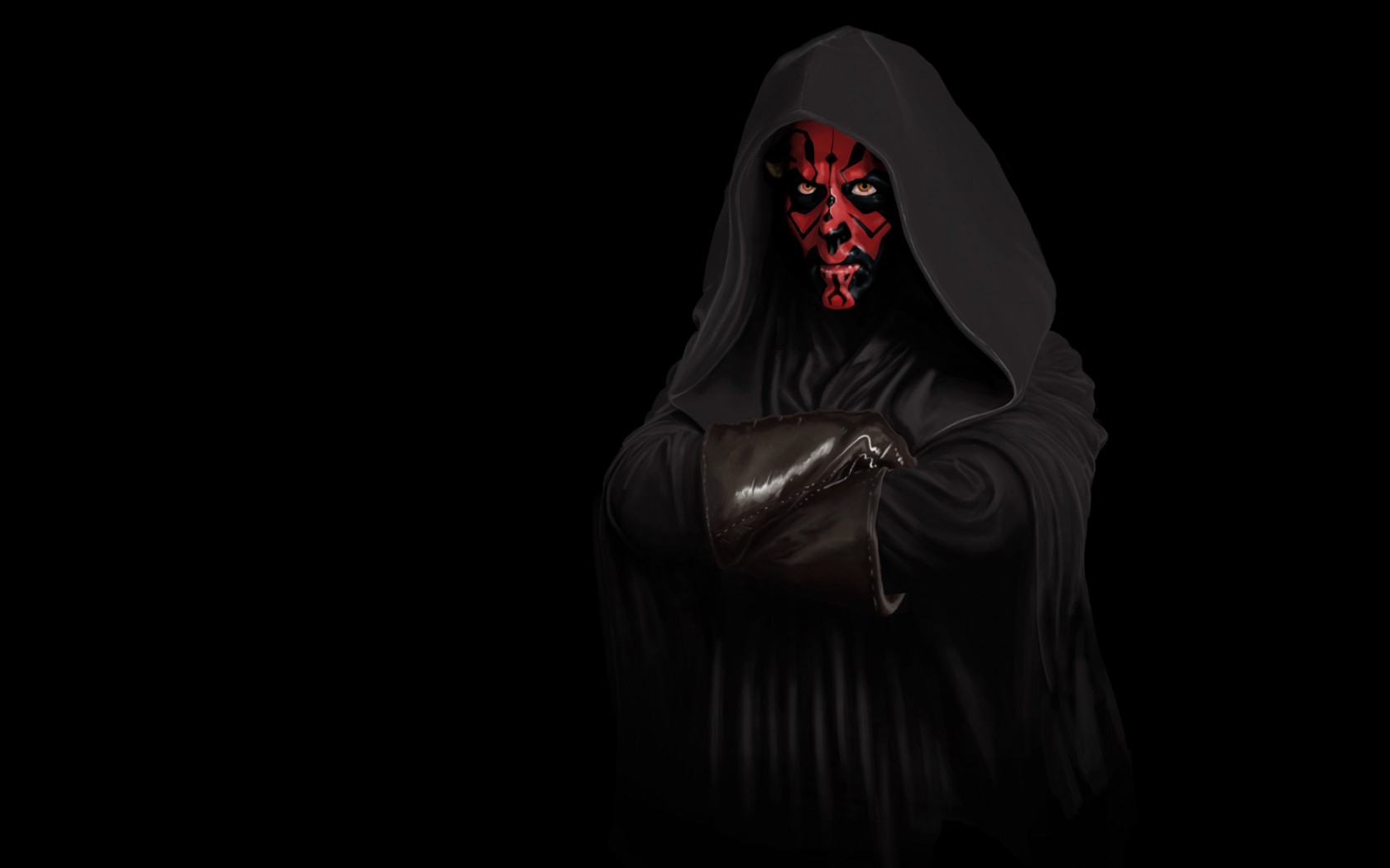Description: A man in a hooded costume with a red mask on holding a bag in his hand and a black background.