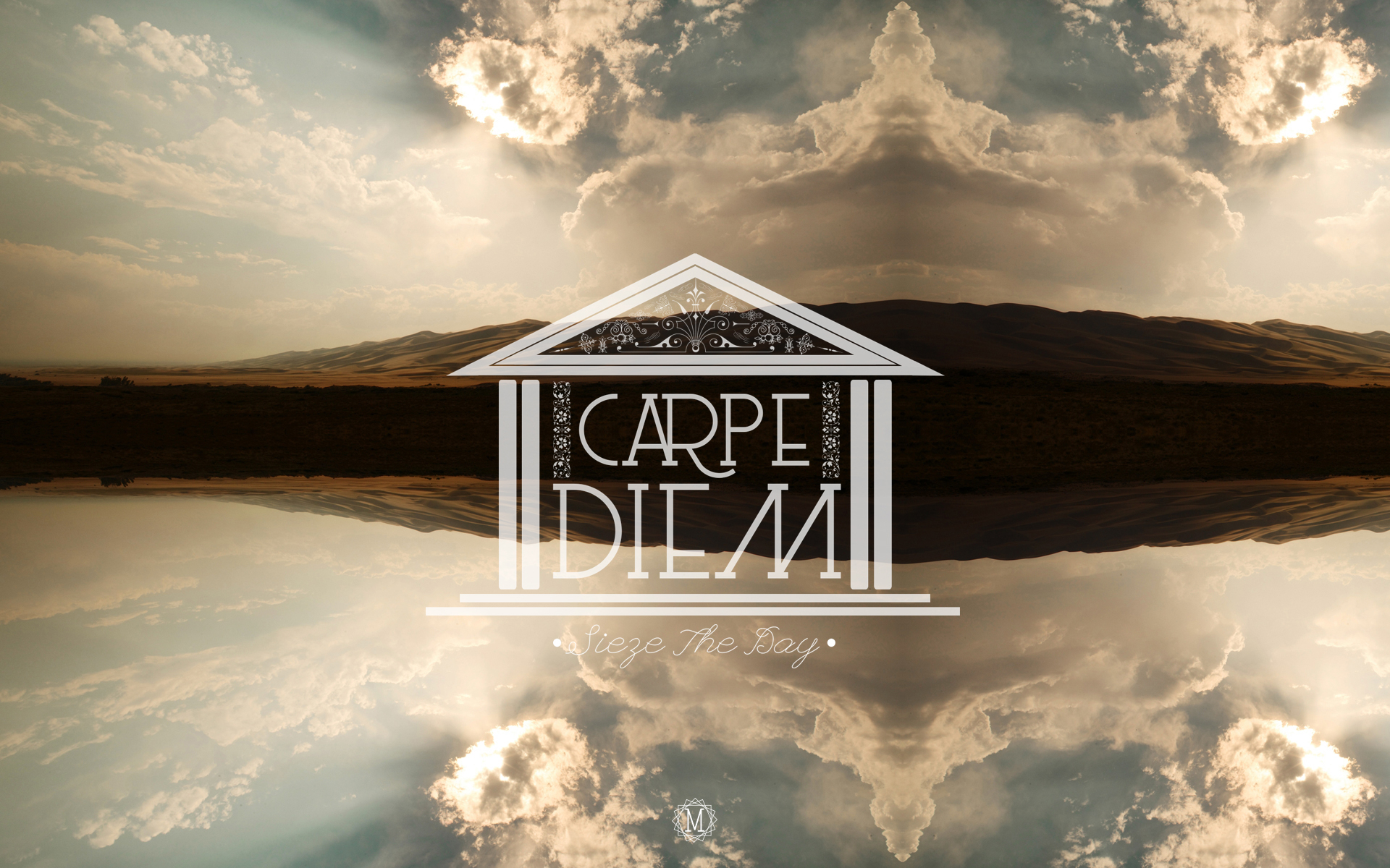 Description: A picture of a house with the words carpe dit m in front of it and a mountain in the background.