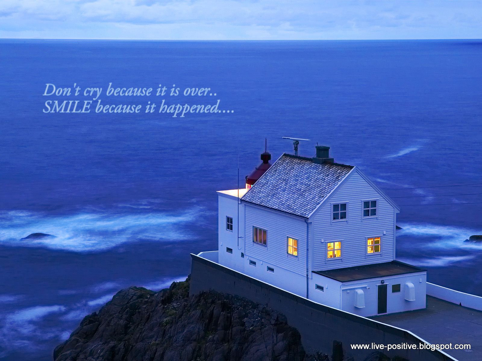 Description: A house on a cliff with a quote about the house on the cliff above it that says.