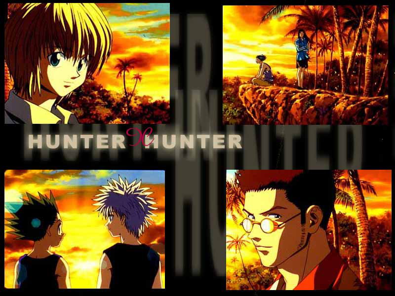 Description: A picture of a man with glasses and a girl with a mohawk in front of a sunset background with the words hunter hunter.