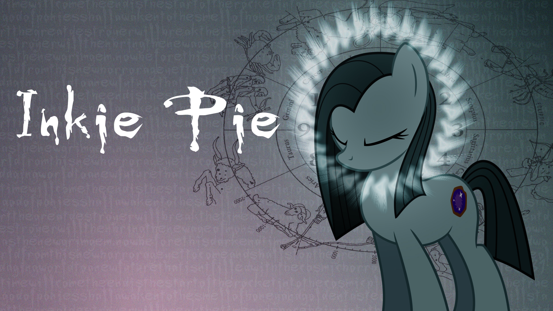 Description: A picture of a cartoon character with a name on it that says inkie pie on it and a picture of a pony with a halo around its neck.