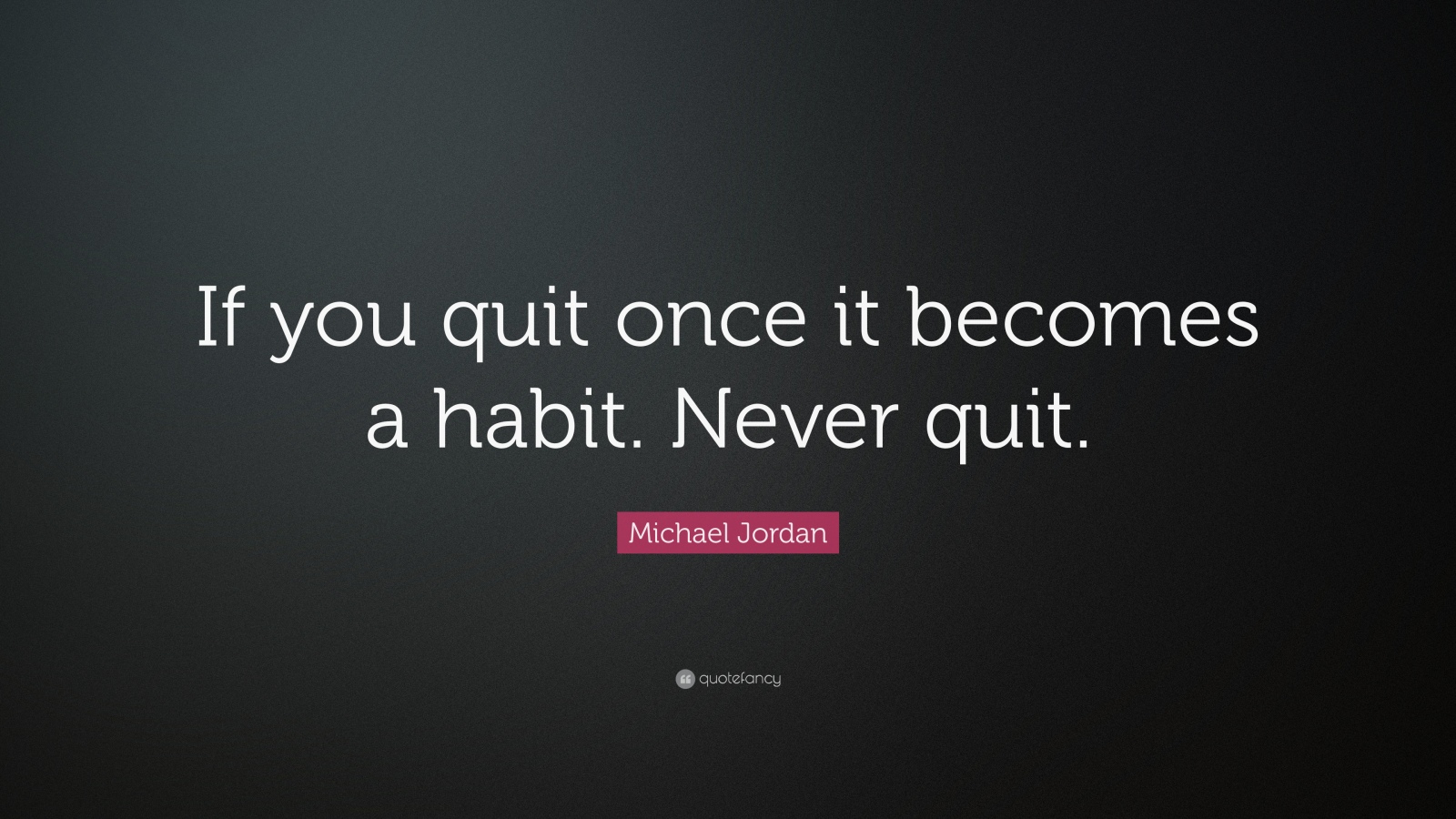 Description: A quote on a black background that says if you quit once it becomes a habit never quitt '.
