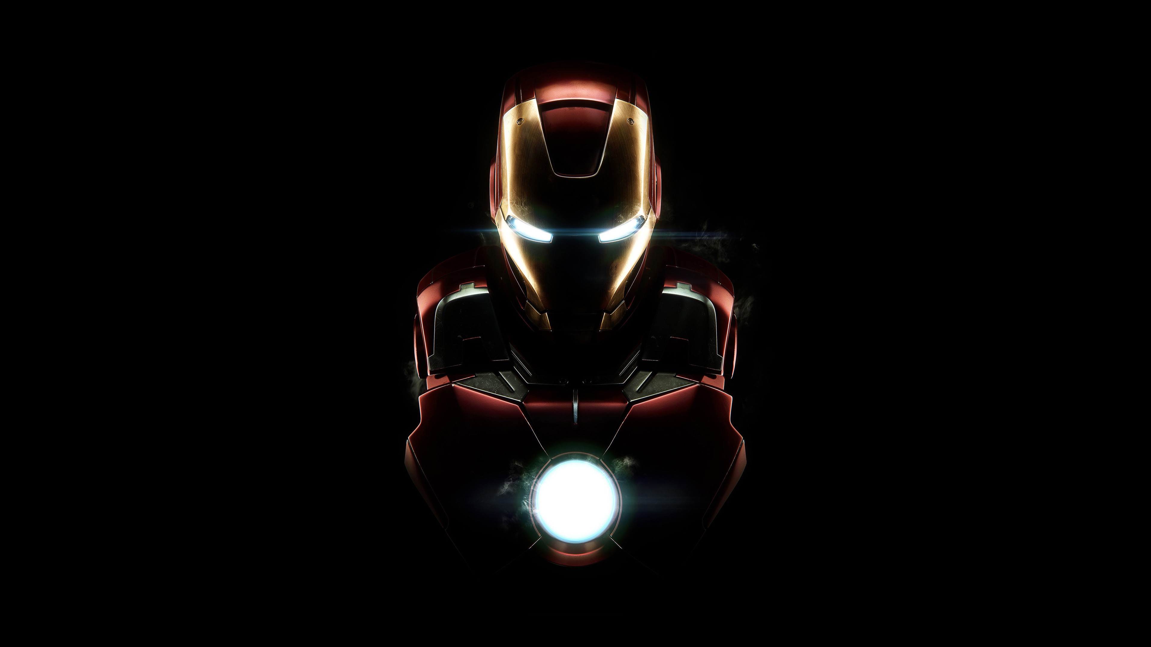 Description: A close up of a iron man in the dark with a light on his face and a glowing head.