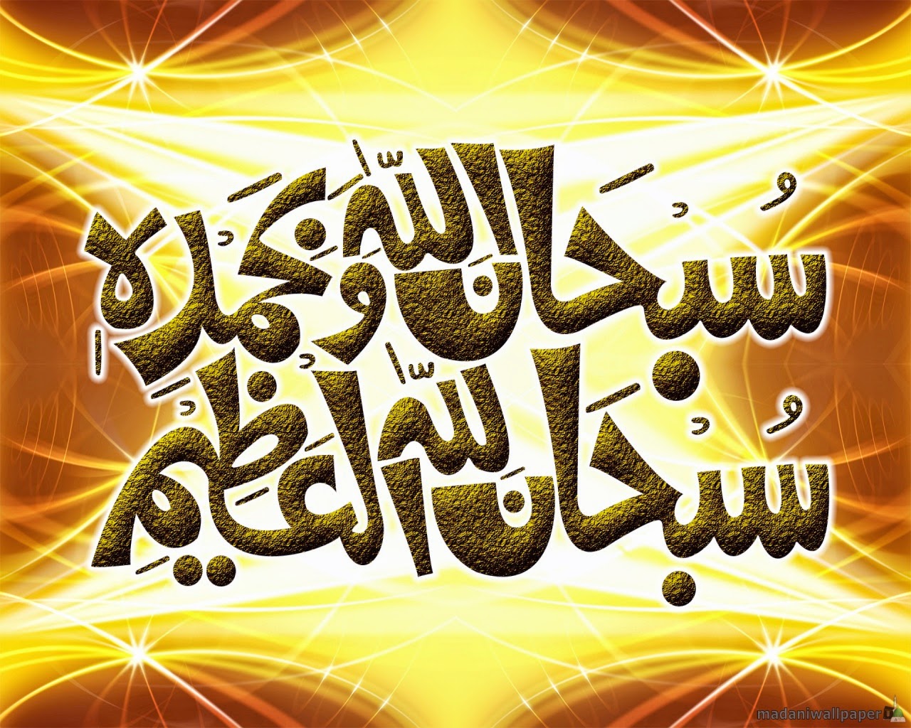 Description: A picture of a islamic text in gold and orange colors with a star pattern in the background and a star pattern in the middle.