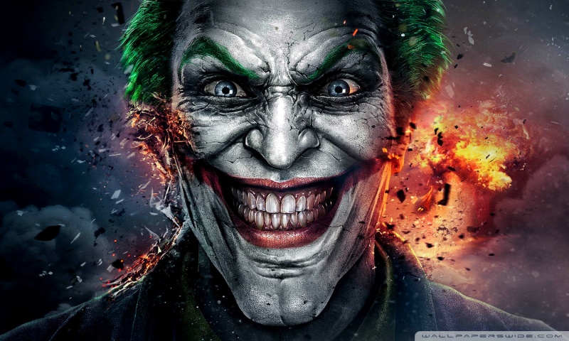 Description: The joker in the dark knight movie poster with a green hair and a green nose and green hair.
