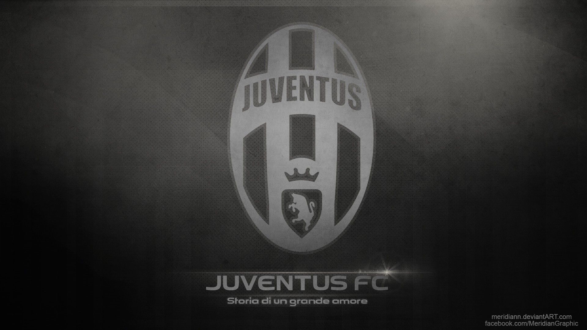 Description: A logo for the soccer team juventus fc on a dark background with a spotlight from the ceiling.