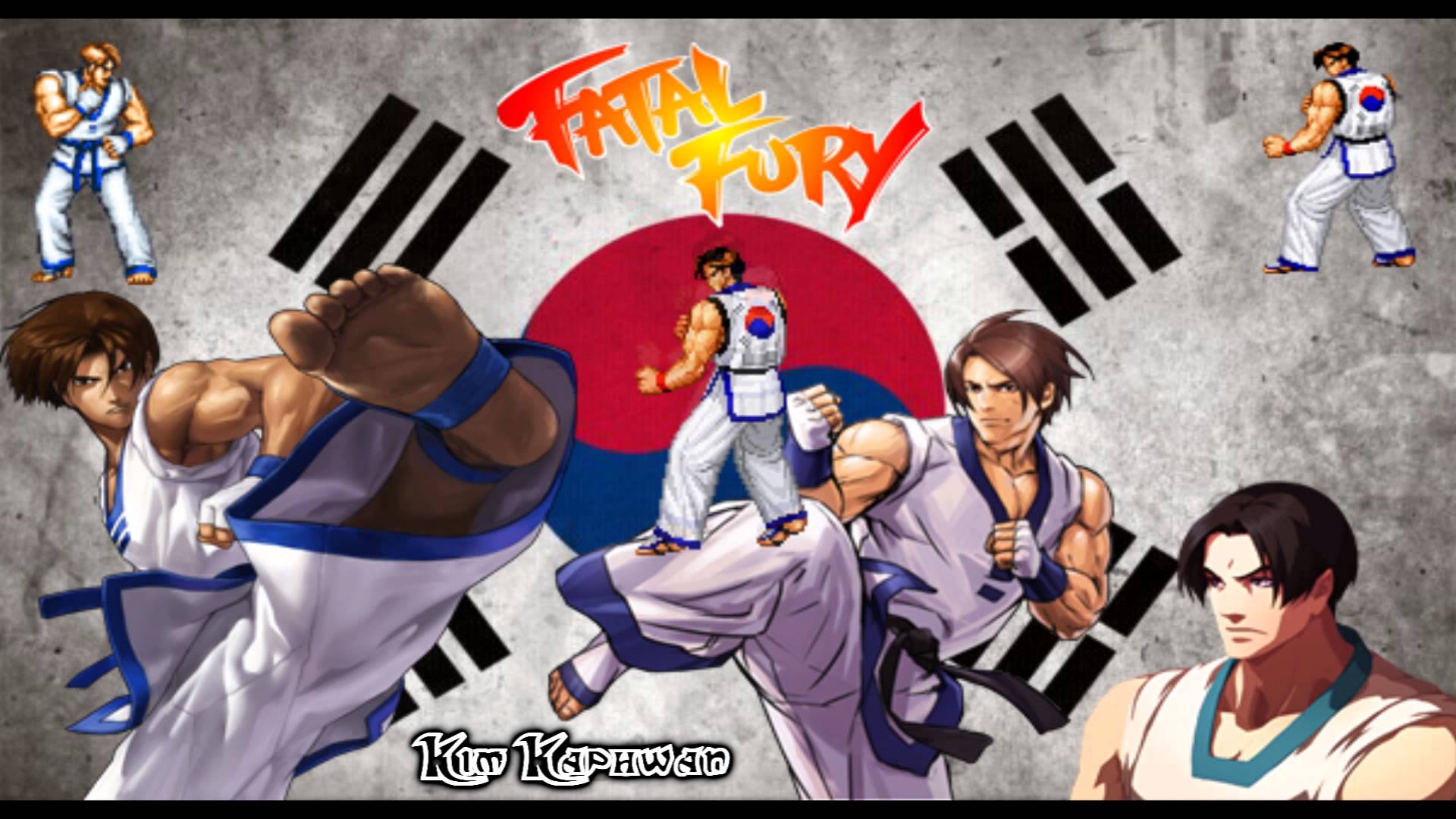 Description: A group of people in karate outfits with a flag in the background and a man holding a fist in the foreground.