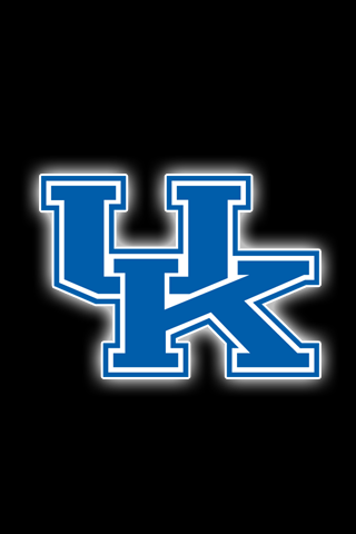 Description: The kentucky university logo on a black background with a blue outline and the letter k in the center of the image.