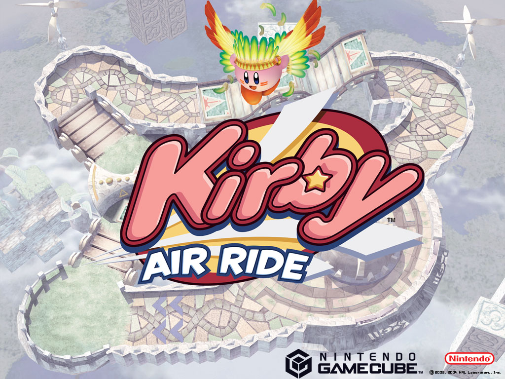 Description: A video game title for the nintendo wii game kinry air ride with a cartoon character on top of a plane.