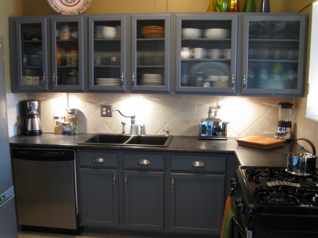 Description: A kitchen with a stove top oven and a refrigerator freezer next to a sink and a stove top oven.