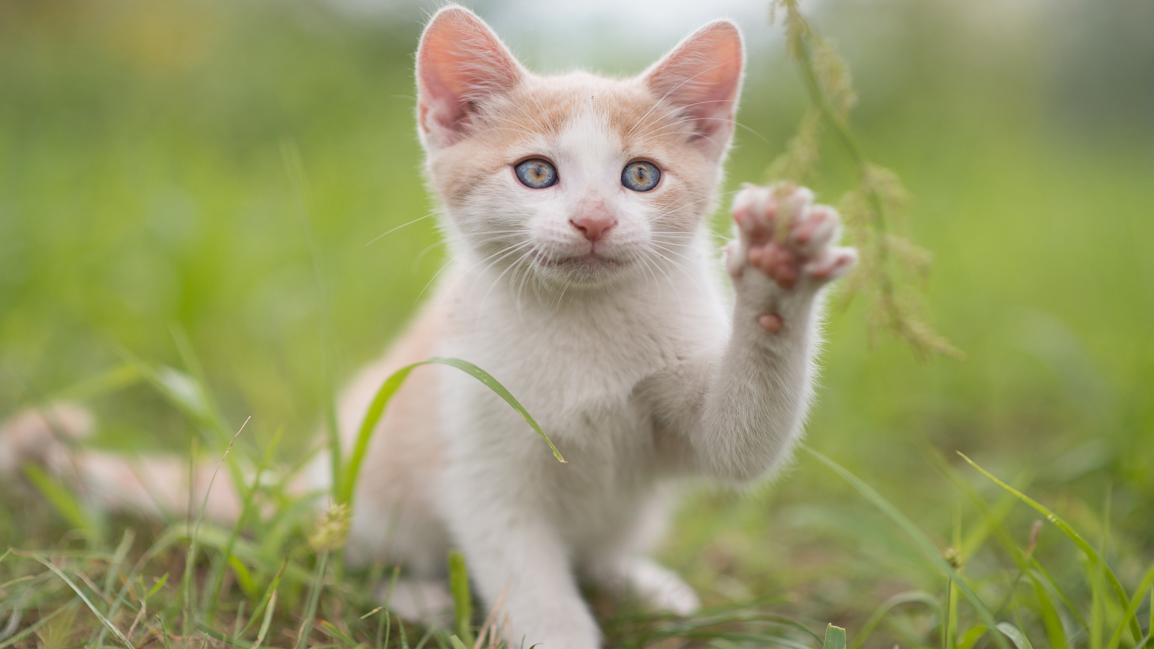 Kitten grass outdoors blue eyes - free wallpaper for desktop | 5desktop.com