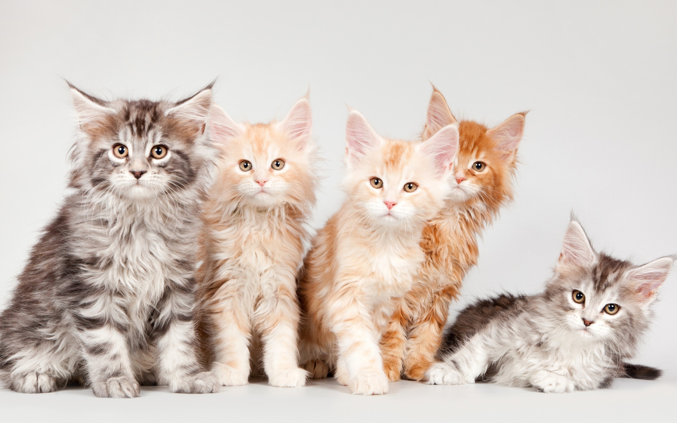 Description: A group of kittens sitting next to each other on a white background with a white background behind them.