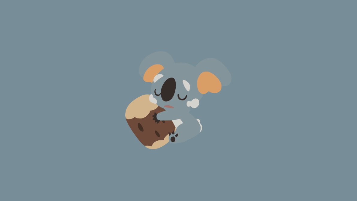 Description: A koala is sleeping on a branch with its eyes closed and it's head tilted down on a blue background.