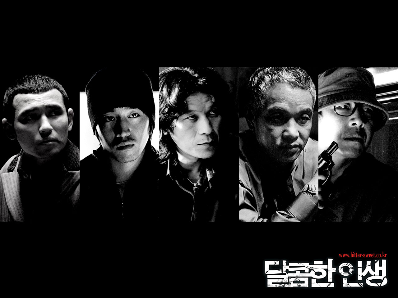 Description: A group of people standing next to each other in a black and white photo with the words korean on it.