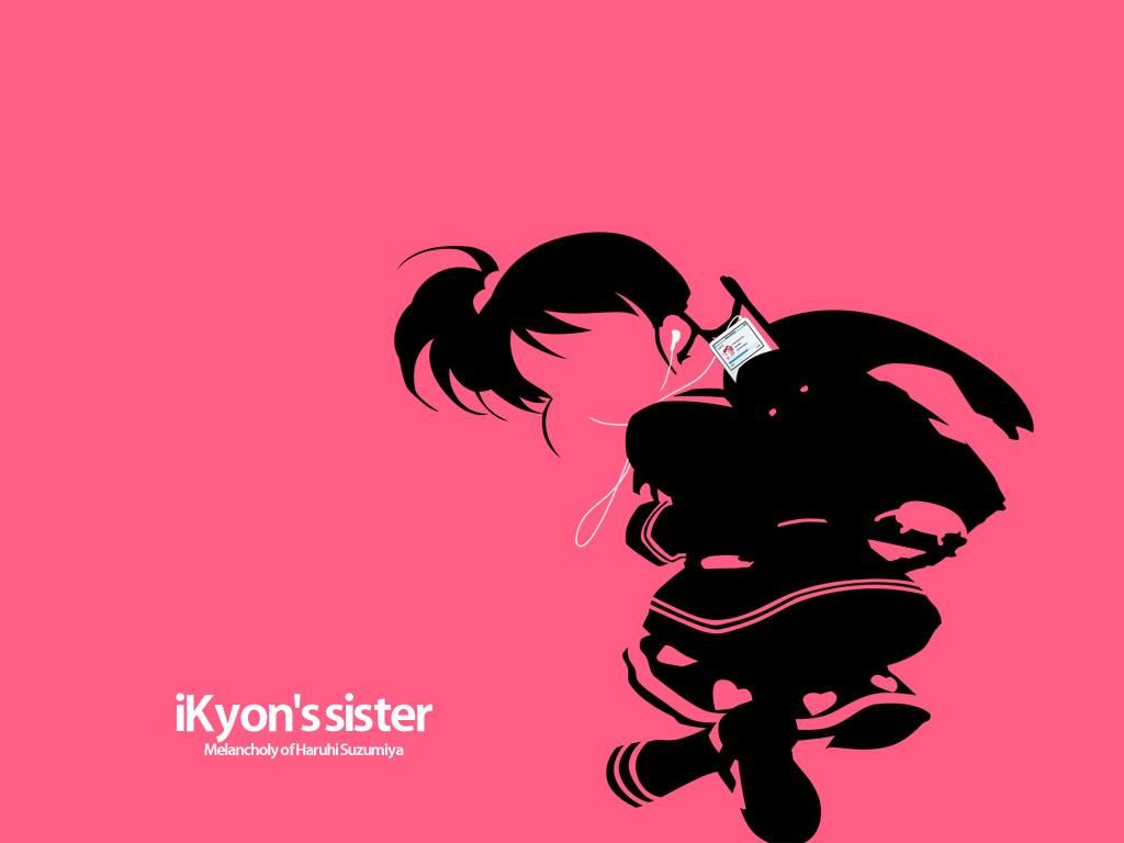 Description: A woman with a cell phone in her hand and a pink background with the words kyon's sister.