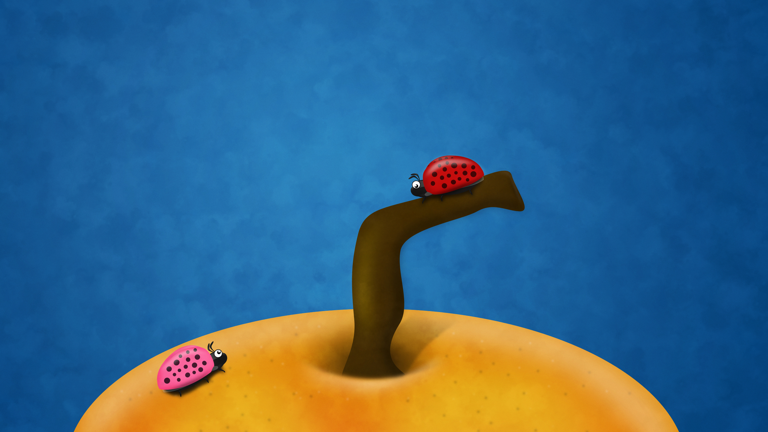Description: A cartoon of a lady bug crawling on a piece of bread with a lady bug on it's back.
