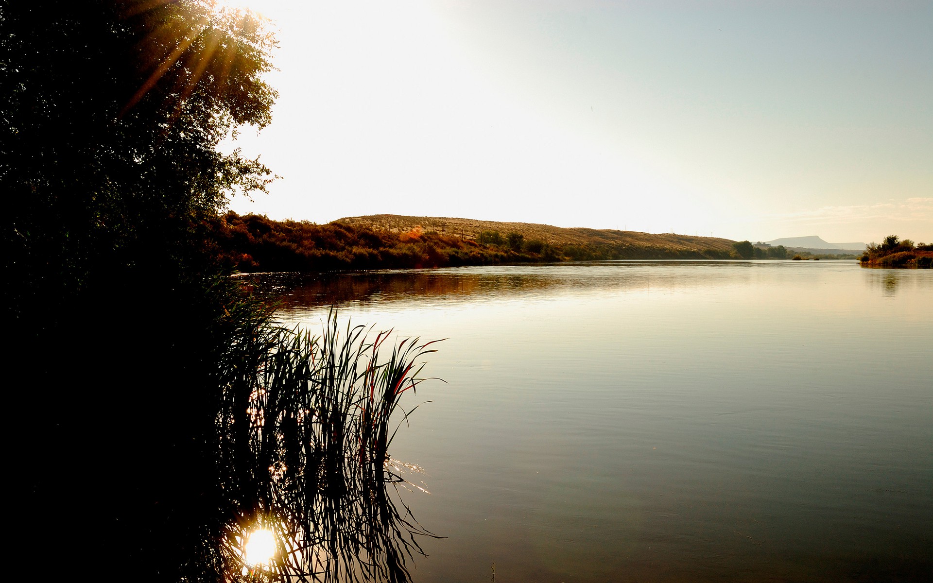 Lake trees hill sunshine water - free wallpaper for desktop | 5desktop.com