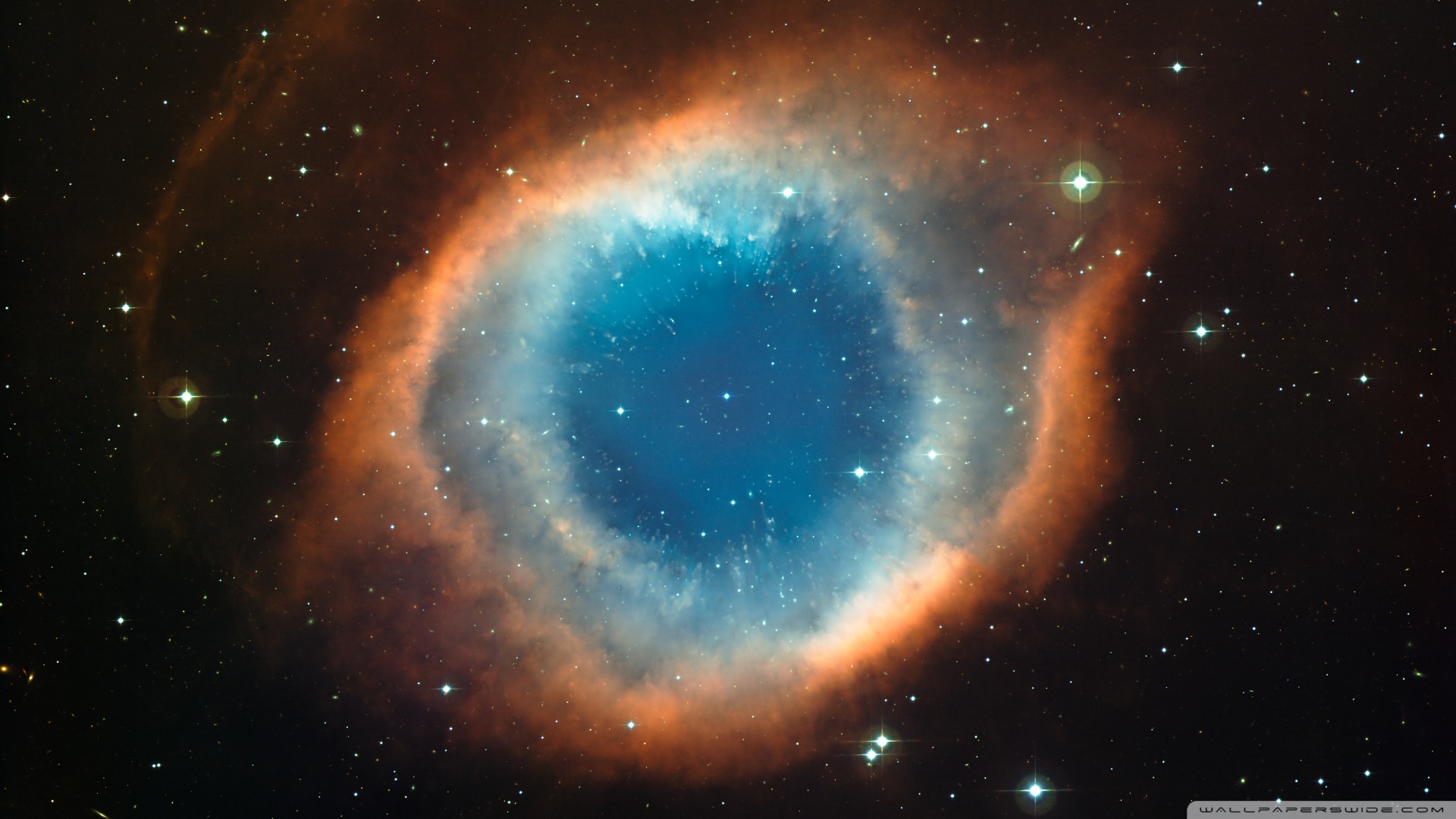 Description: A very large blue ring in the middle of a sky filled with stars and stars.