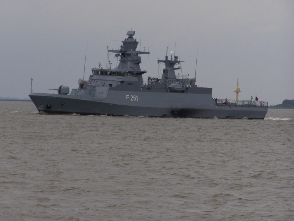 Description: A large boat in the water with a smaller boat in the background on the water with a smaller boat in the foreground.