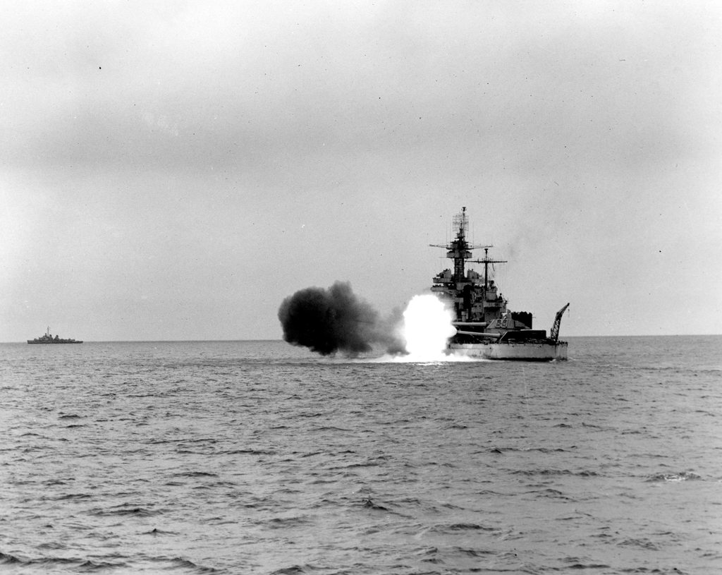 Description: A large boat with a lot of smoke coming out of it's back end in the water with another boat in the background.