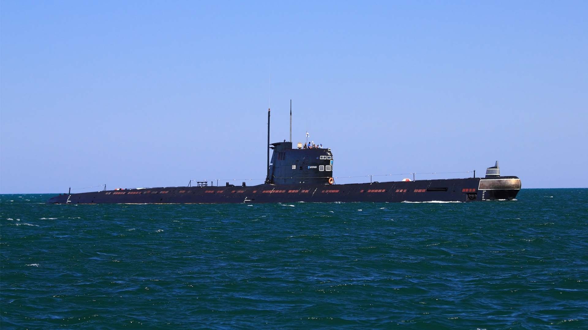 Description: A large boat floating on top of a body of water next to a boat on a body of water.
