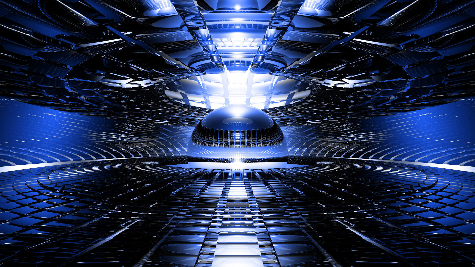 Description: A very large room with a very bright light coming from it's ceiling and a mirror reflecting the floor.