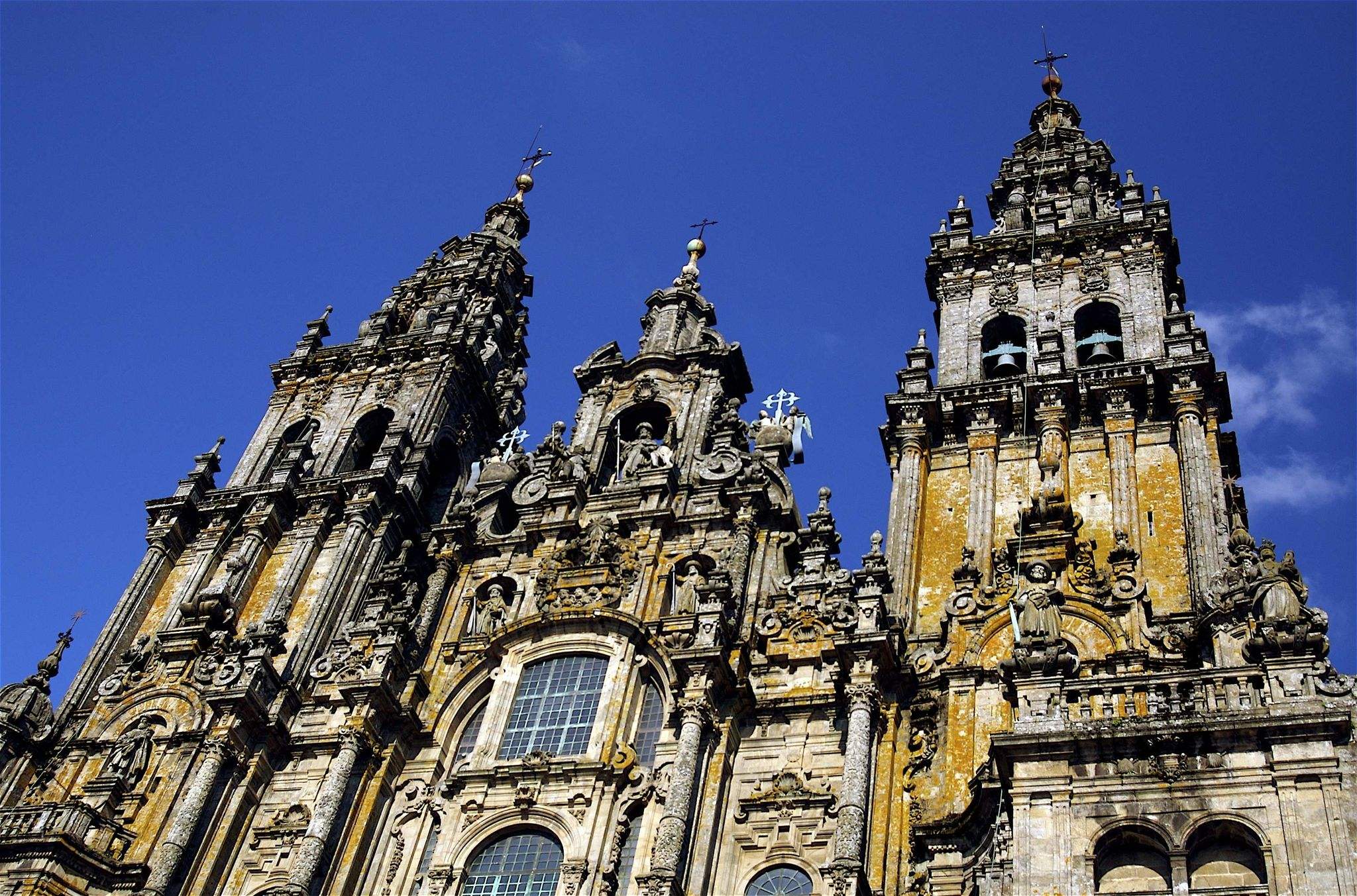 Description: A large building with a clock on the front of it's face and a sky background behind it.
