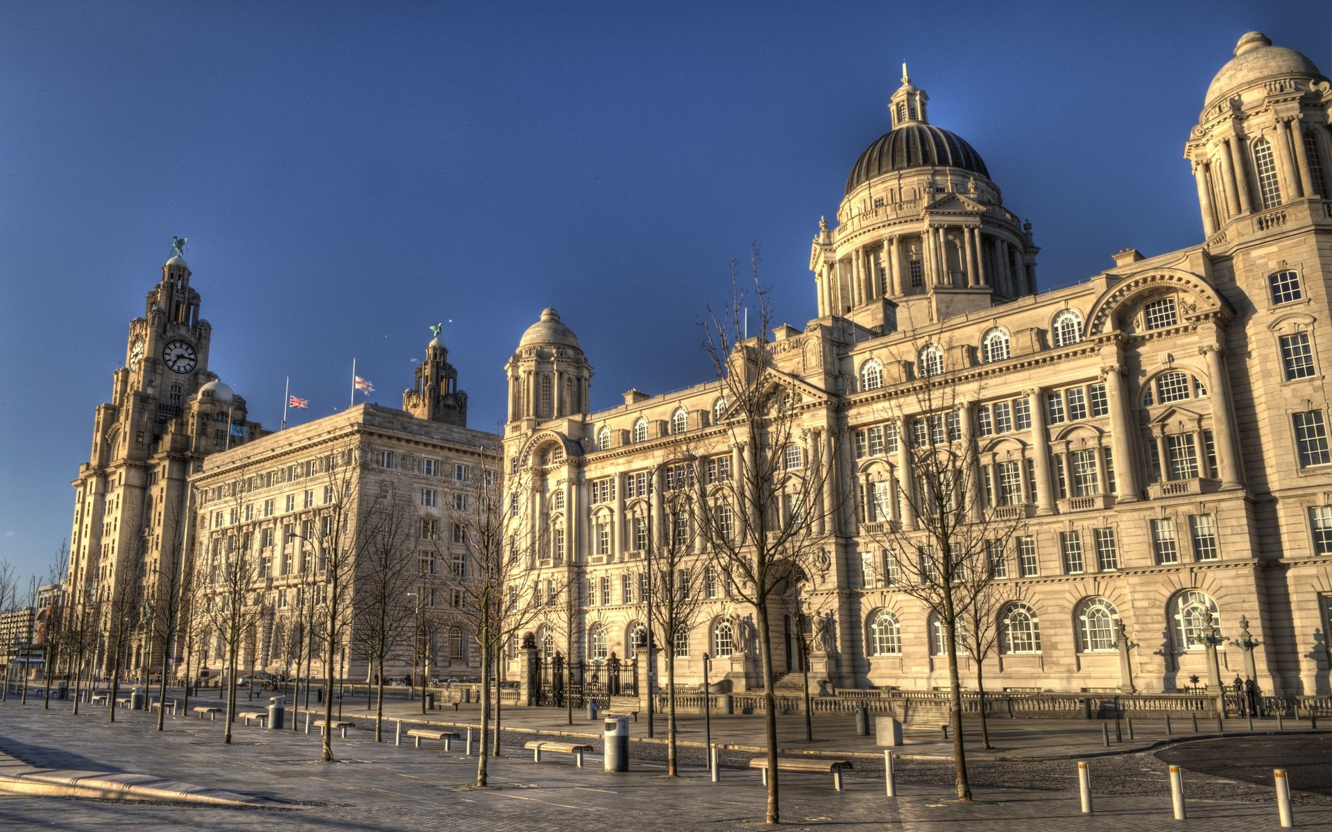 Description: A large building with a clock tower on top of it's side and a lot of trees in front of it.