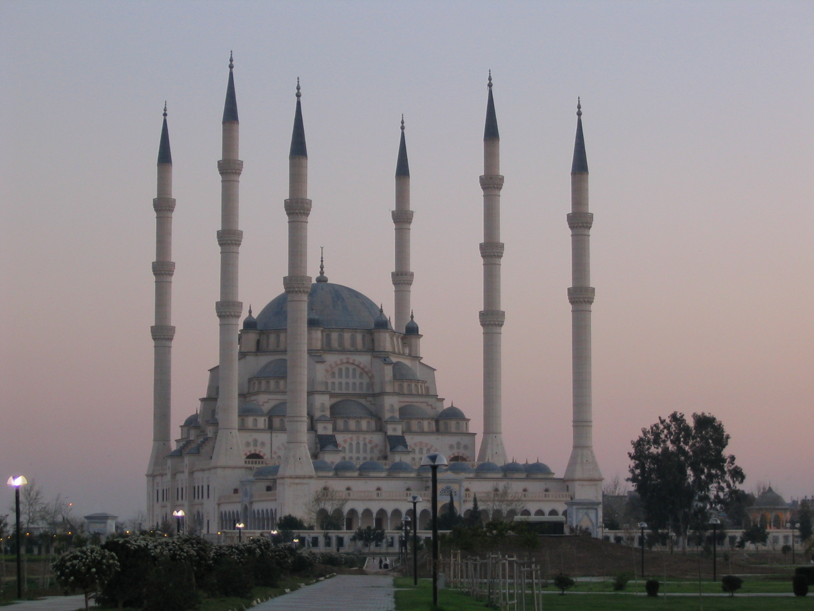 Description: A large building with a lot of spires on it's sides and a walkway leading to it.
