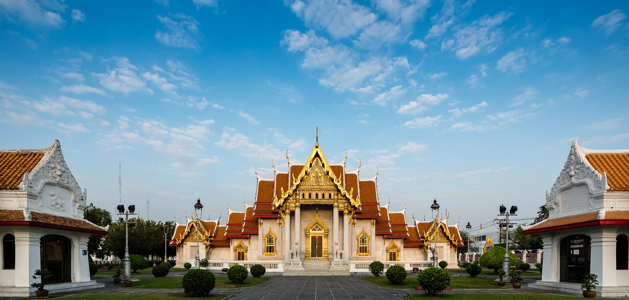 Description: A large building with a lot of windows and a sky background with clouds in the sky above it and a walkway leading to the entrance.
