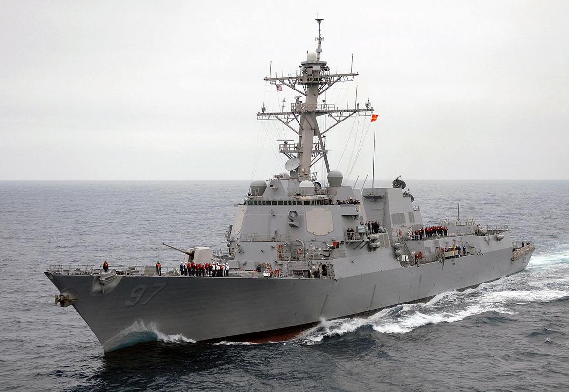 Description: A large gray ship in the middle of the ocean with a lot of people on it's side.