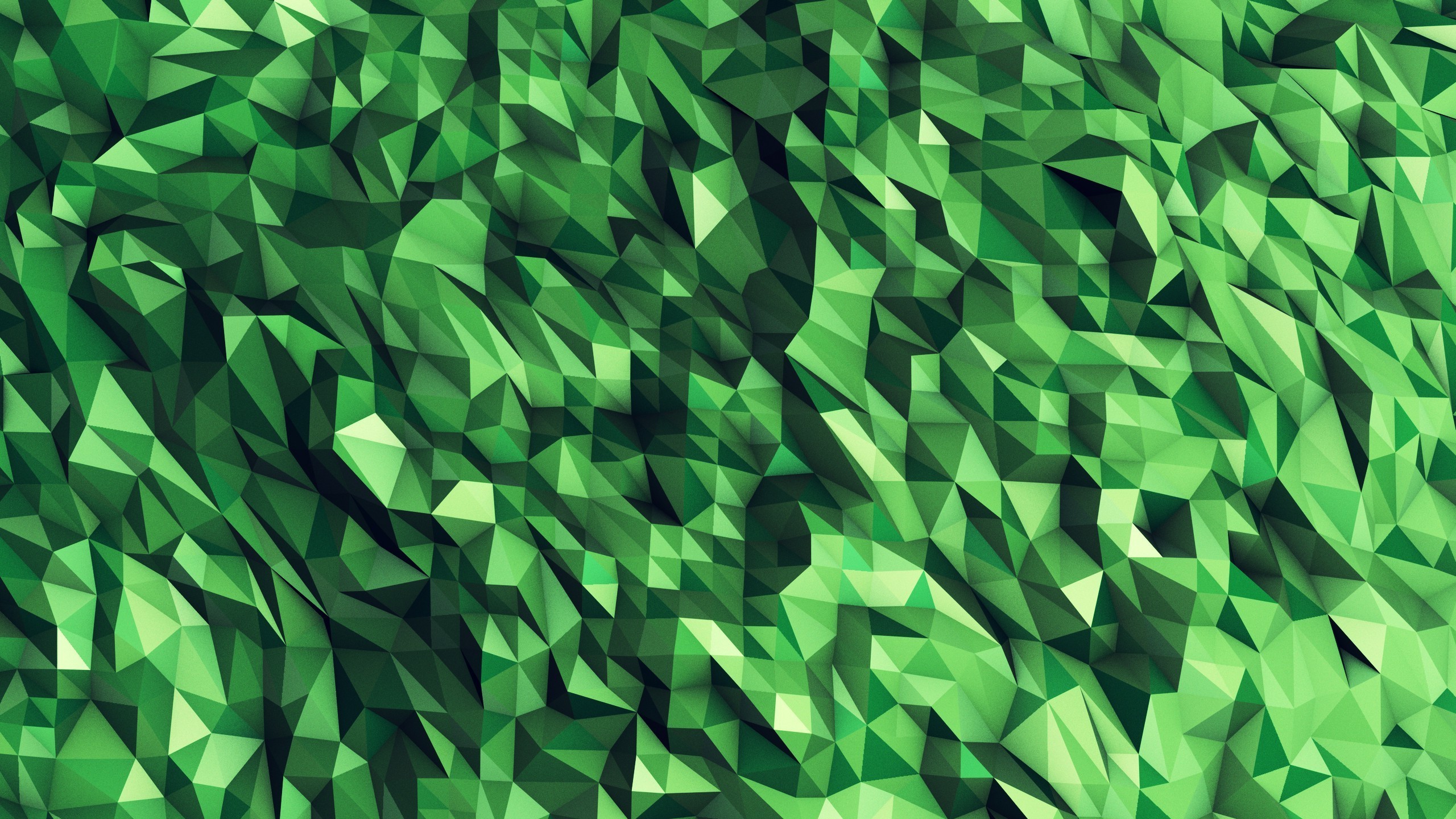 Description: A very large green abstract background with many small triangles and shapes in the center of the image.