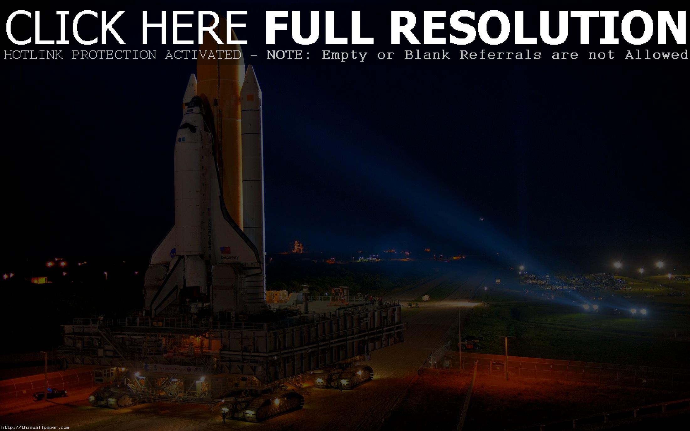 Description: A large rocket is on display in a museum at night with a full resolution background and a caption below.