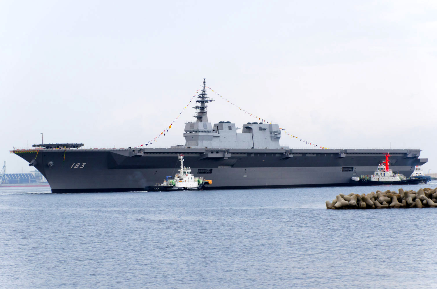 Description: A large ship is in the water near a dock and a small boat is in the water near it.
