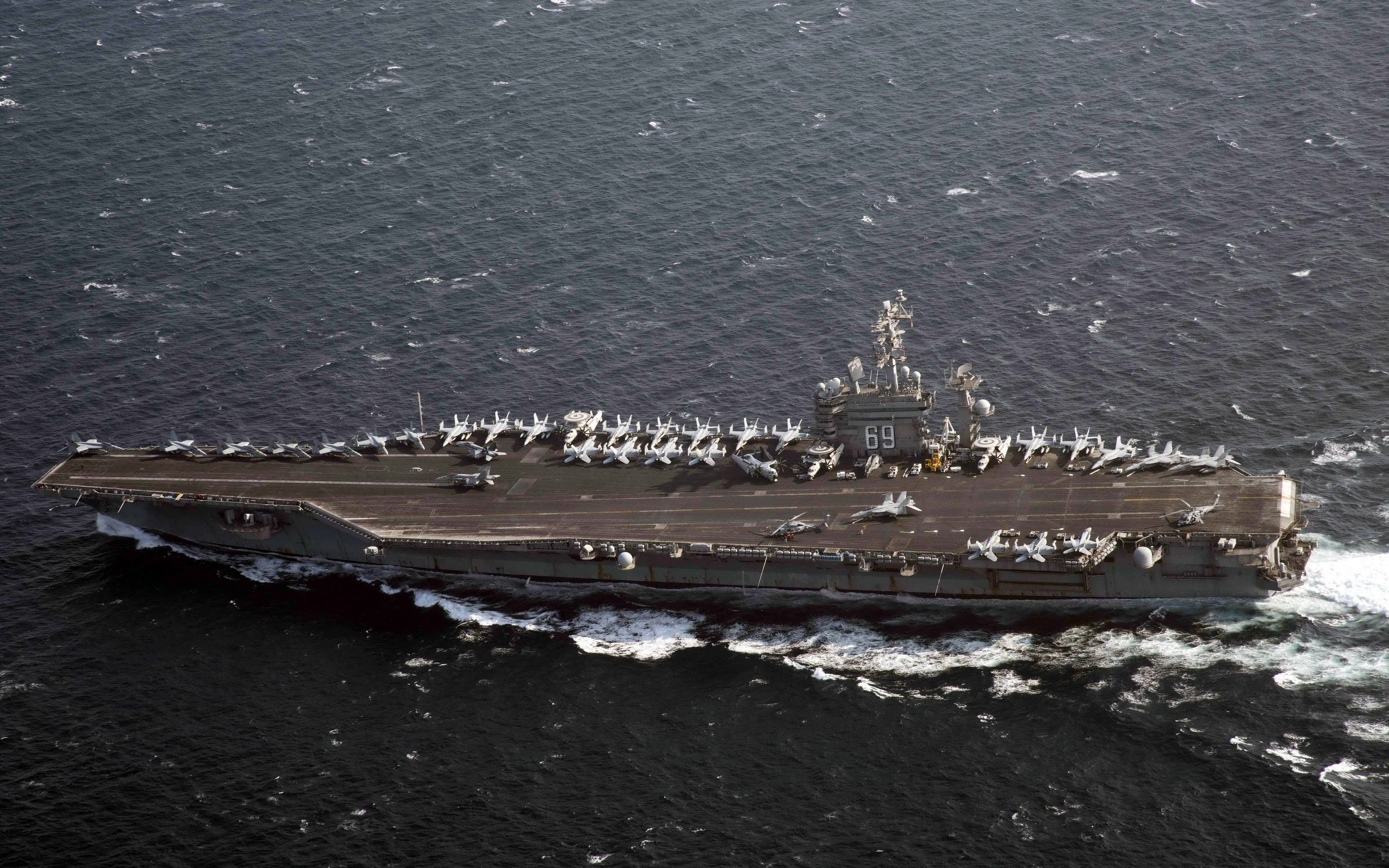 Description: A large ship in the middle of the ocean with many birds on it's deck and in the water.