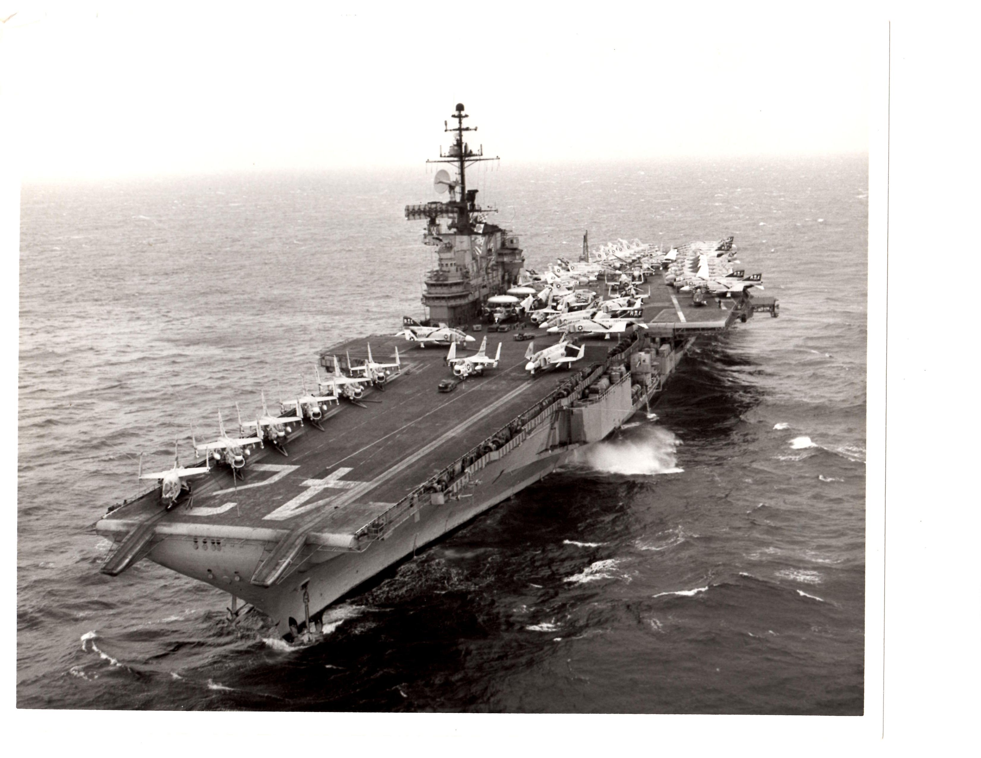 Description: A large ship in the middle of the ocean with a lot of smaller boats on it's side.