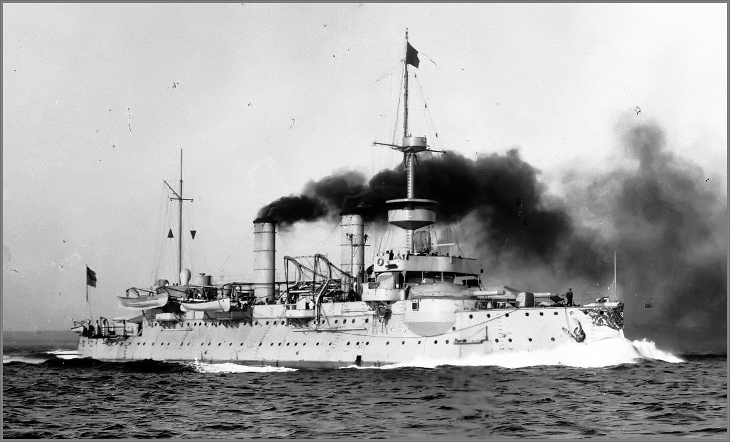 Description: A large ship with smoke coming out of it's stacks of smoke as it sails through the water.