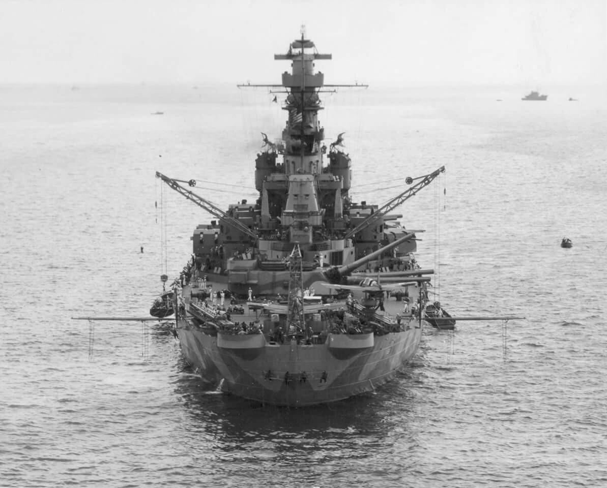 Description: A large ship in the water with a lot of people on it's side and a boat in the water.