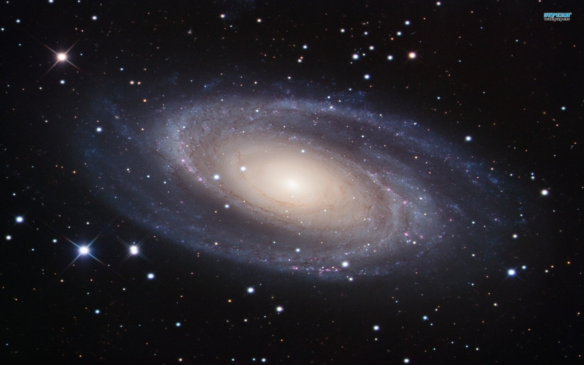 Description: A very large spiral galaxy with stars in the background and a black sky background with stars in the foreground.