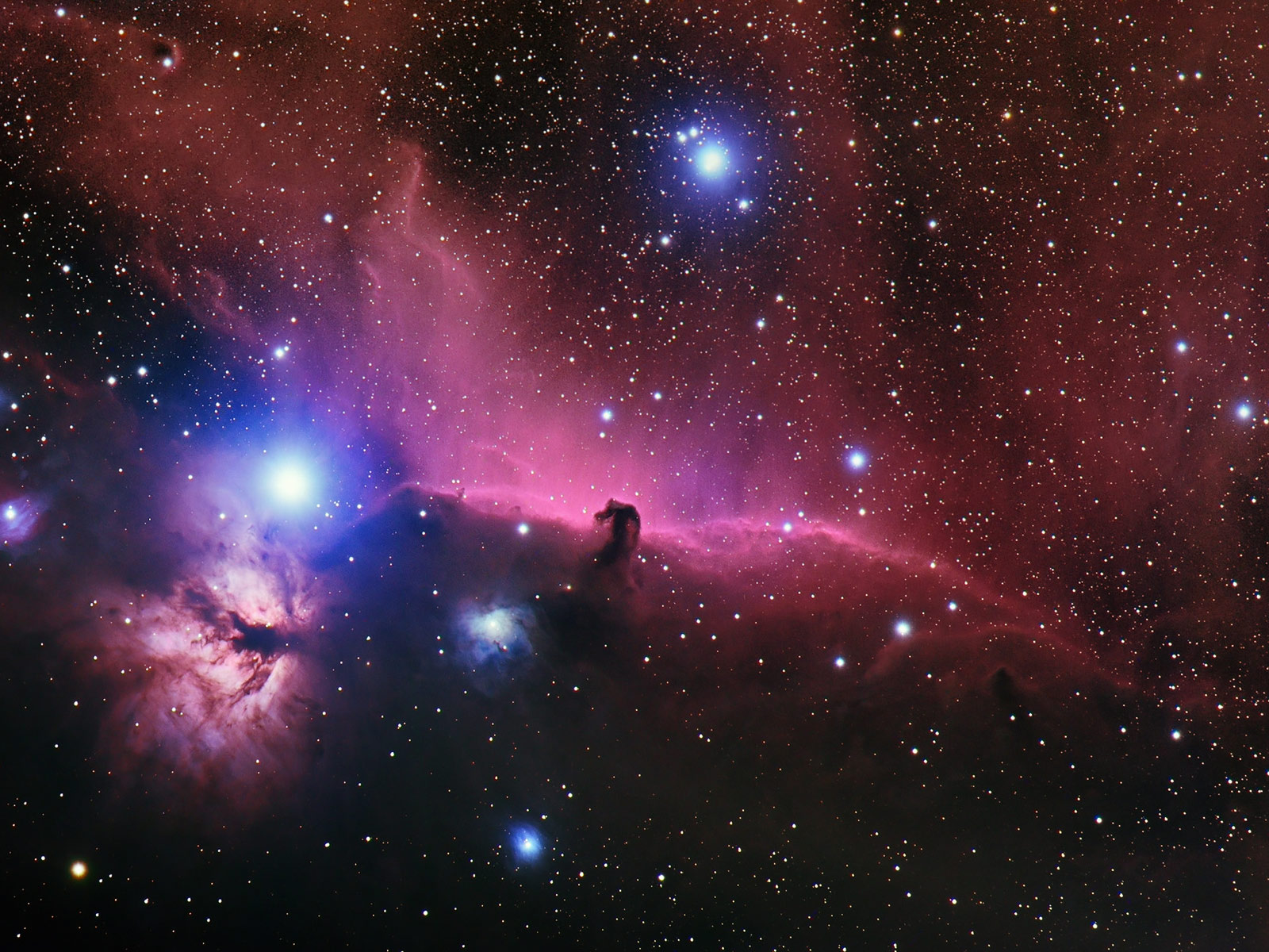 Description: A large star cluster in the sky with stars around it and a horse's head in the center.