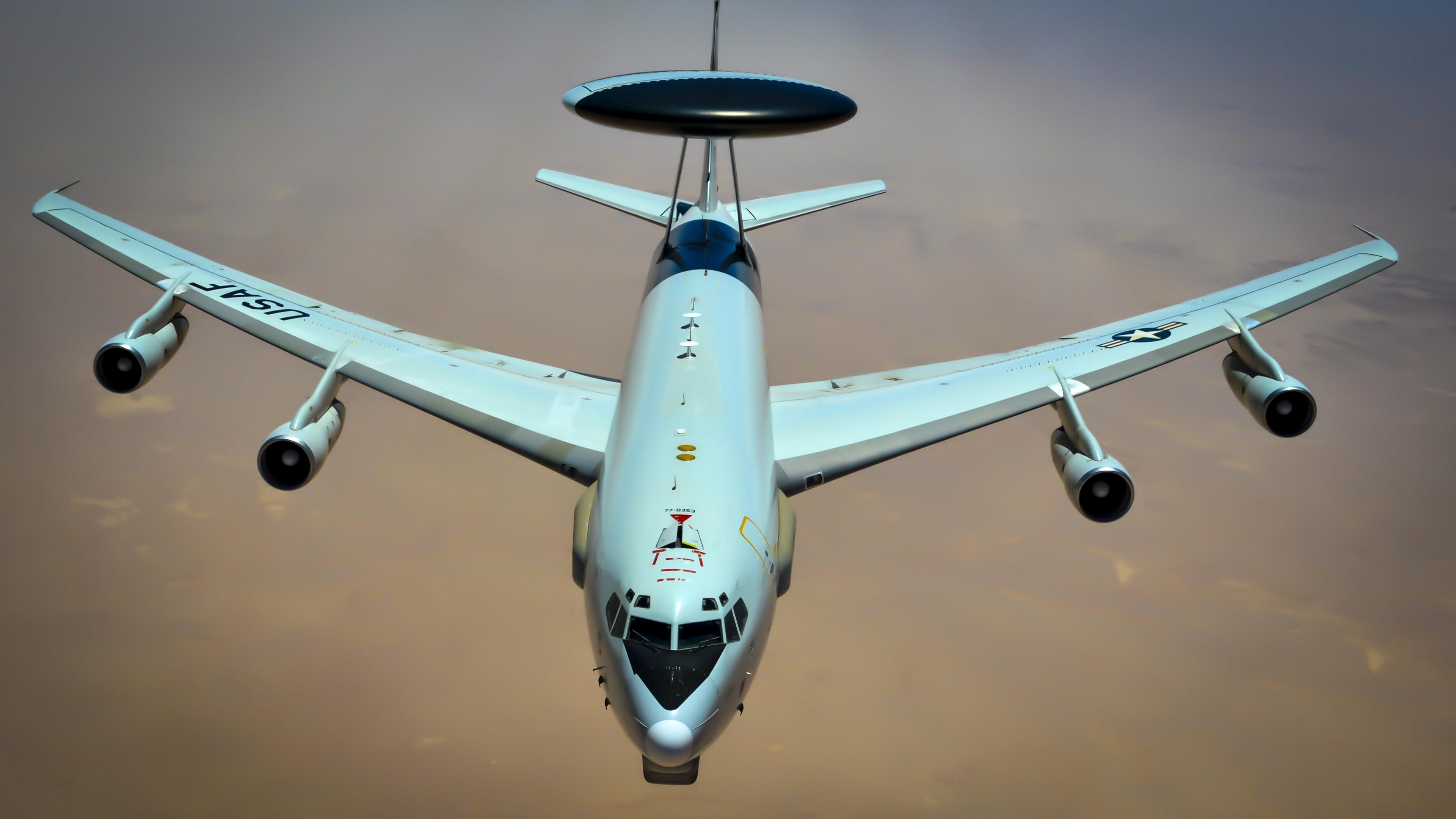 Description: A large white airplane flying through a cloudy sky with its landing gear down and a landing gear down on the front of the plane.