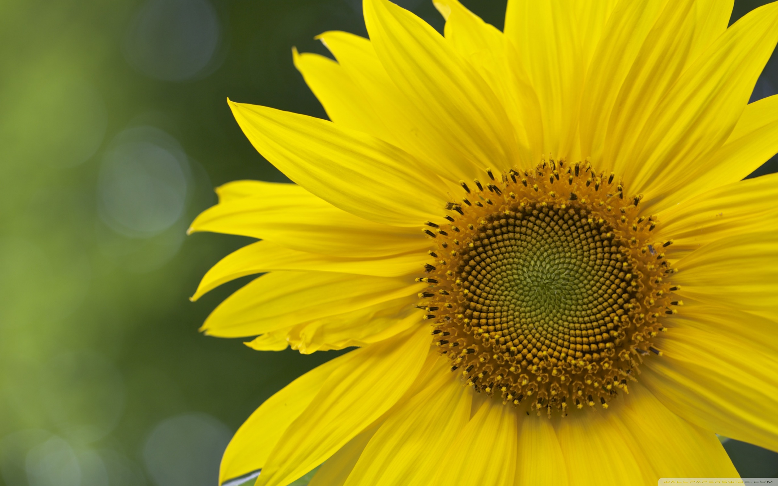 Description: A large yellow flower with a green center in the middle of it's petals and a blurry background.